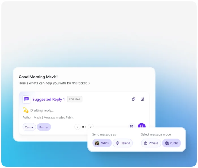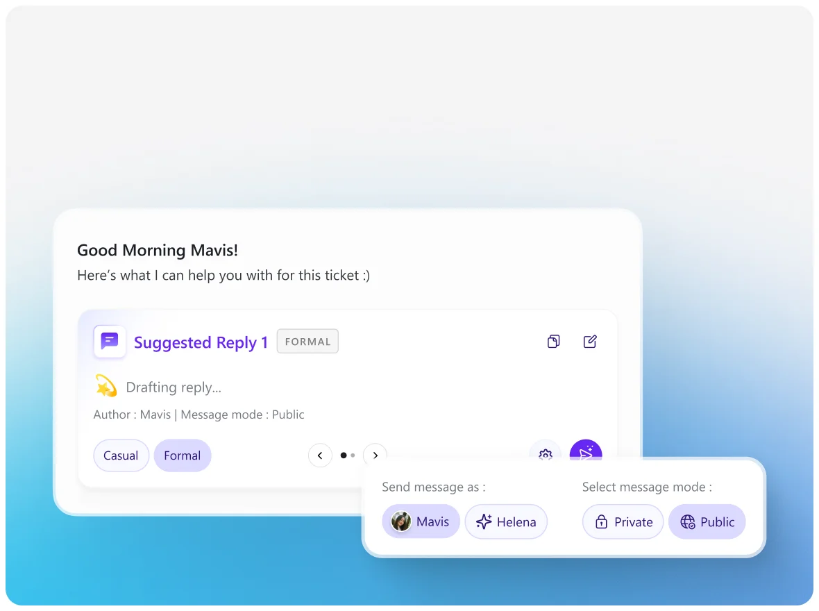 Drafts smart, real-time reply suggestions that speed responses and lift client satisfaction.