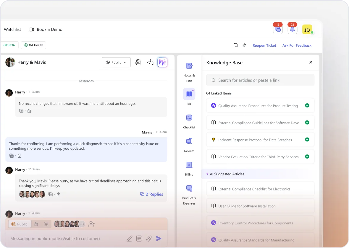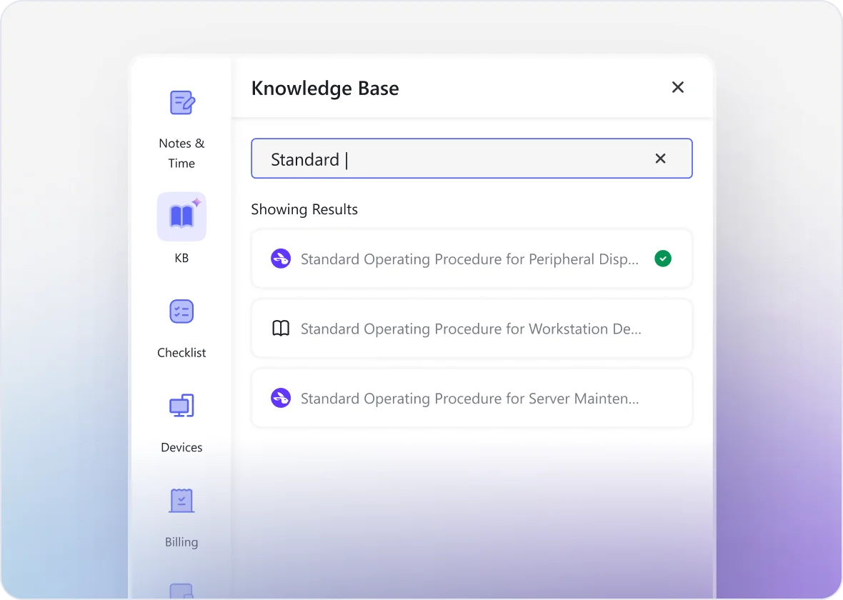 We believe in a true single-pane-of-glass experience. Every documentation action, whether it’s Helena auto-syncing an SOP or a technician manually searching for a guide, happens entirely within the ticket UI. By eliminating the need to toggle between platforms, we remove the "context switching tax" that drains technician energy, allowing them to stay focused and efficient.