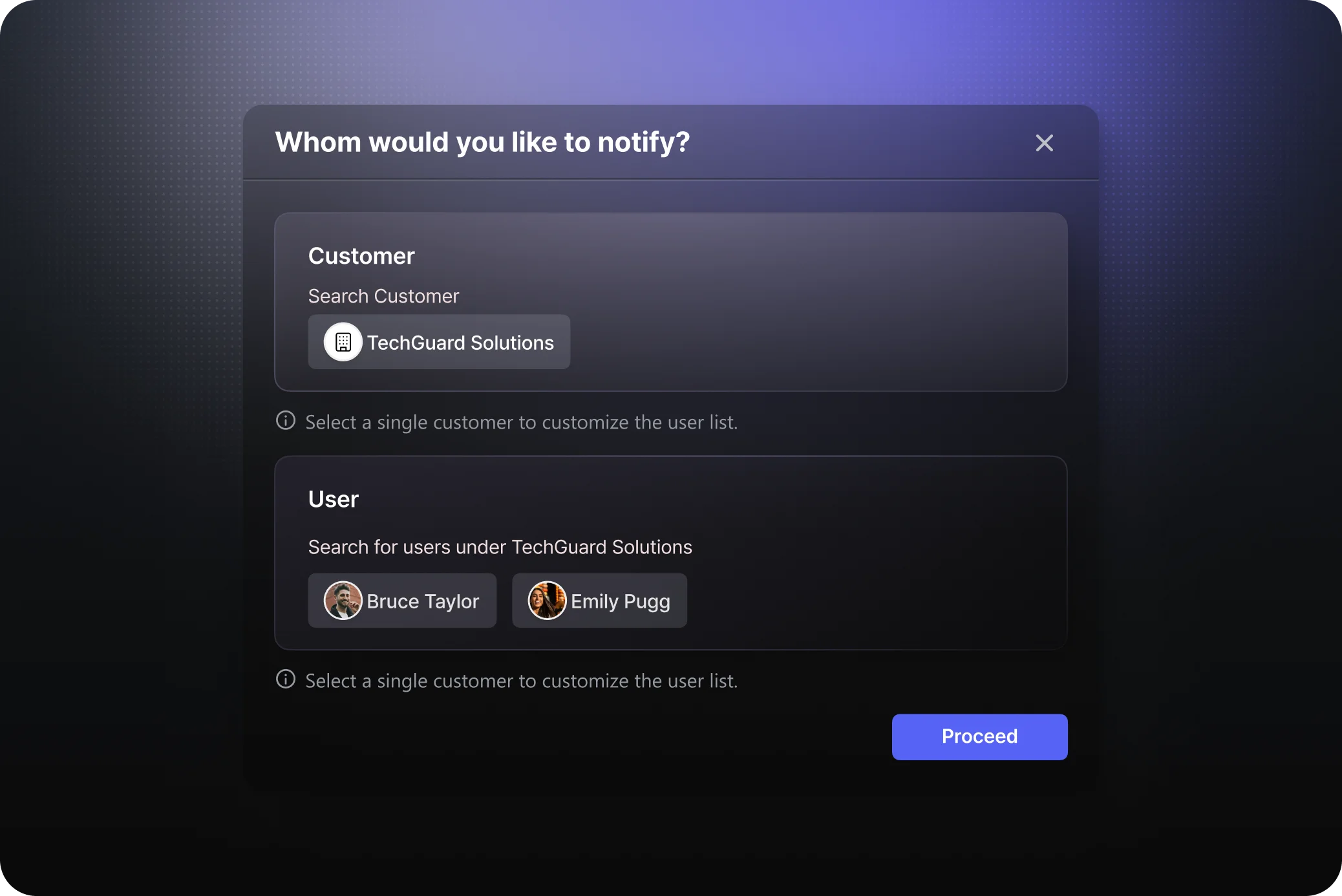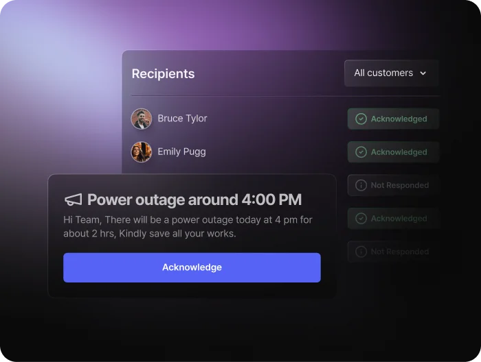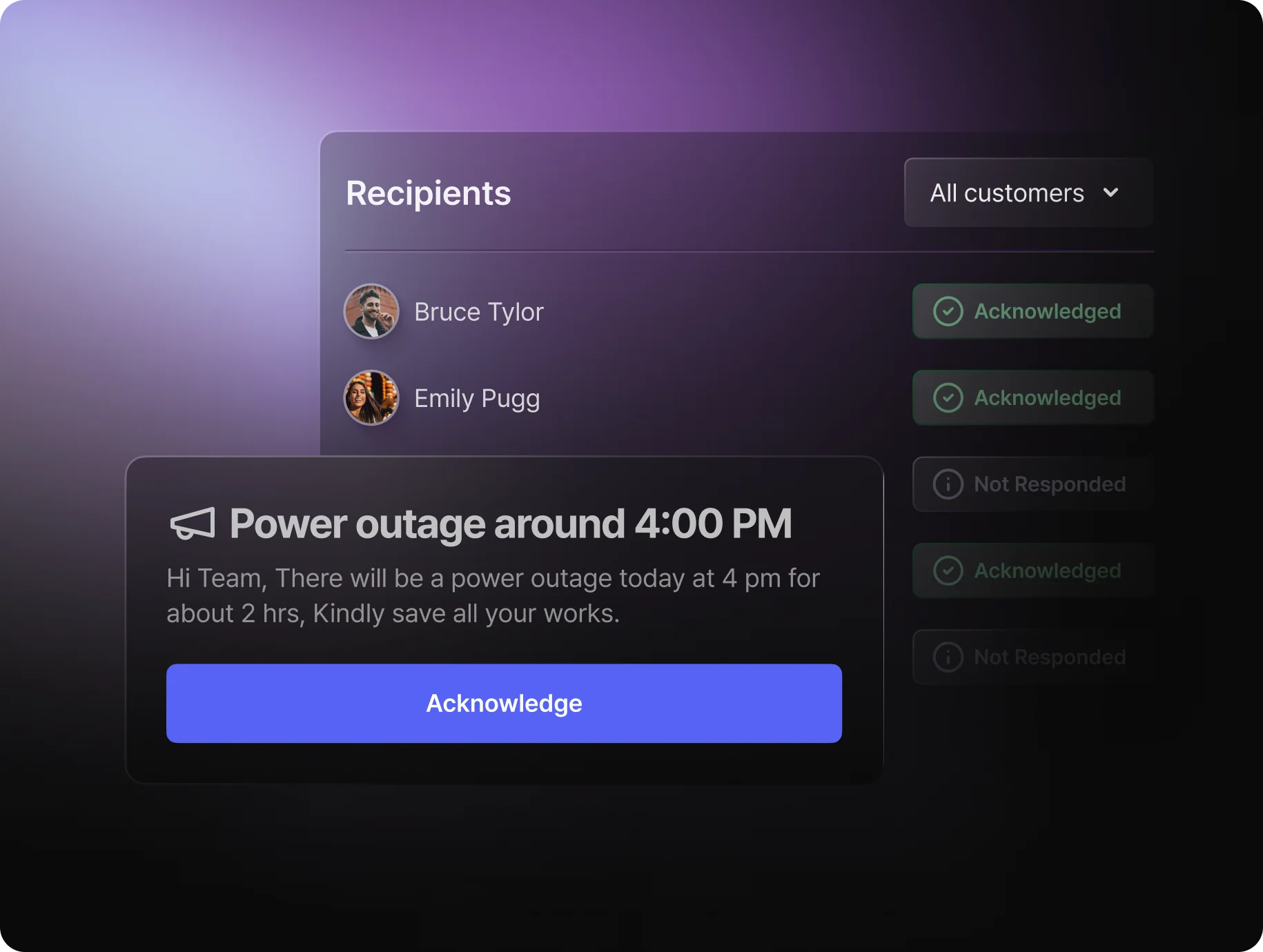 Keep your end-users always in the loop with real-time updates. Whether it's an outage, a critical announcement, or a quick update, reach your target users instantly.