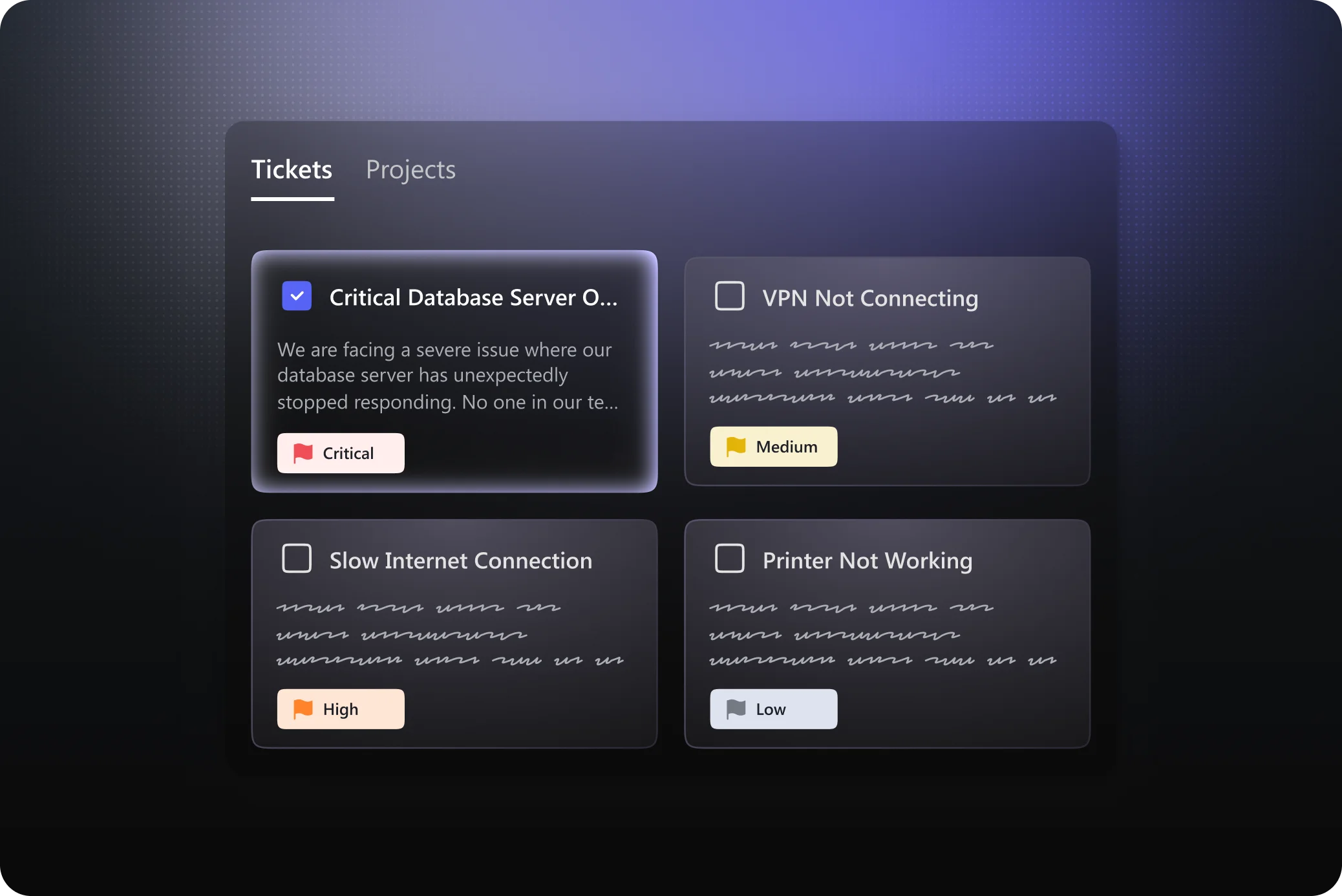 Empower end-users with a range of predefined templates tailored for different ticket scenarios. Because one size never fits all.