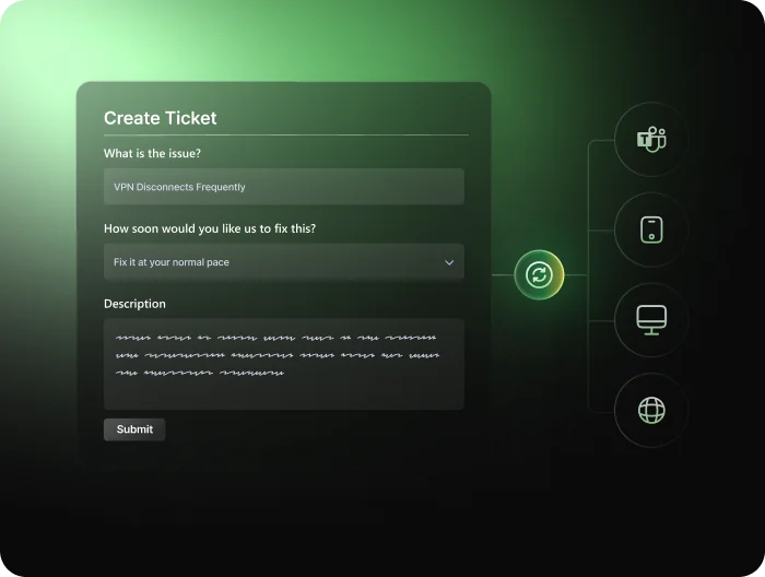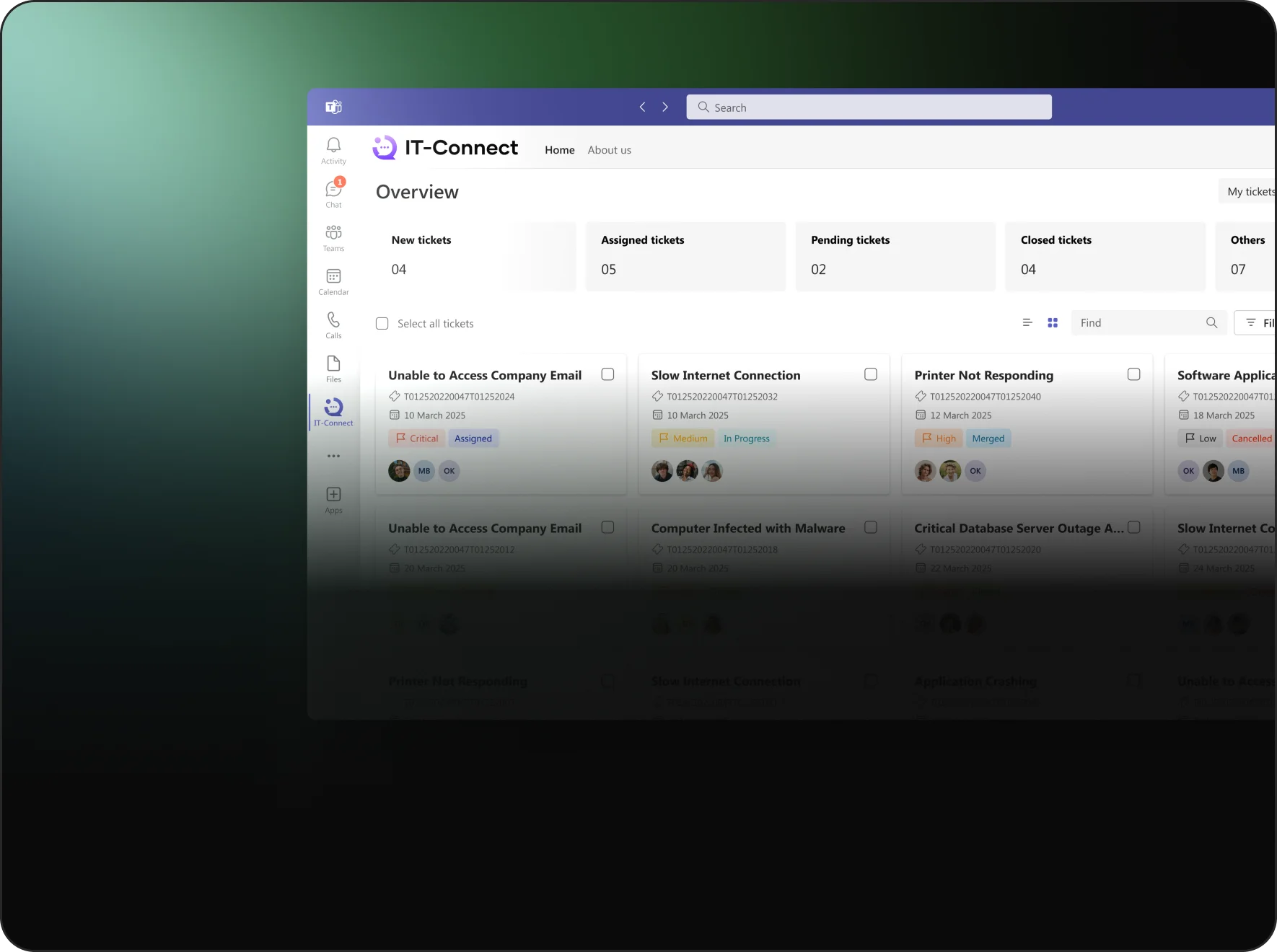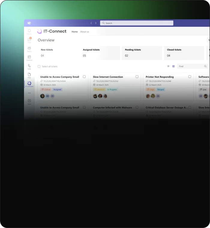 Why step out when your users can get things done right from their MS Teams? Let them raise tickets, get updates, and chat with your IT team without ever leaving their work hangout spot.