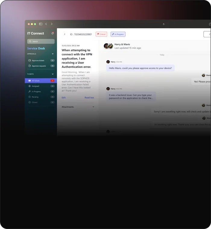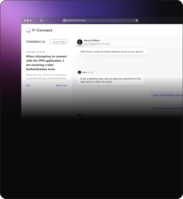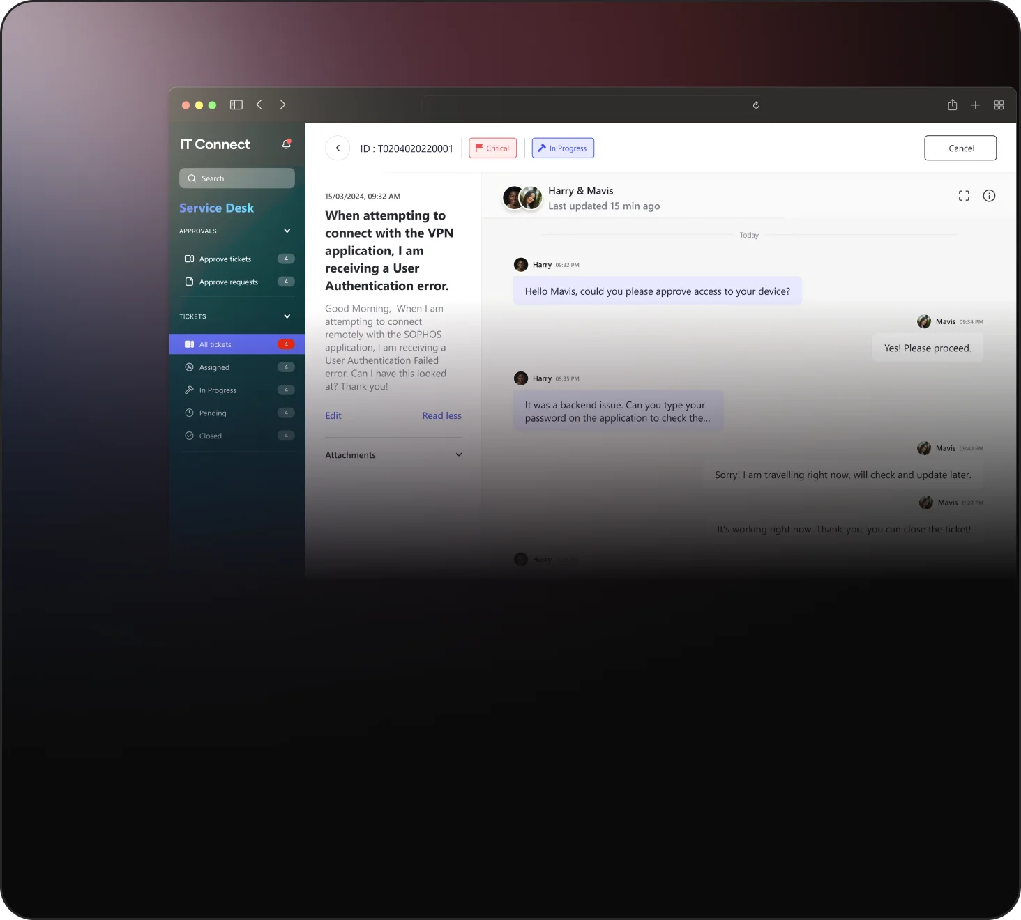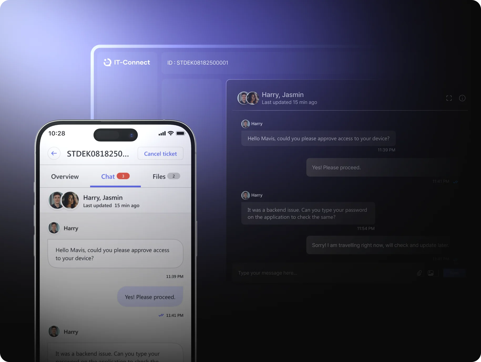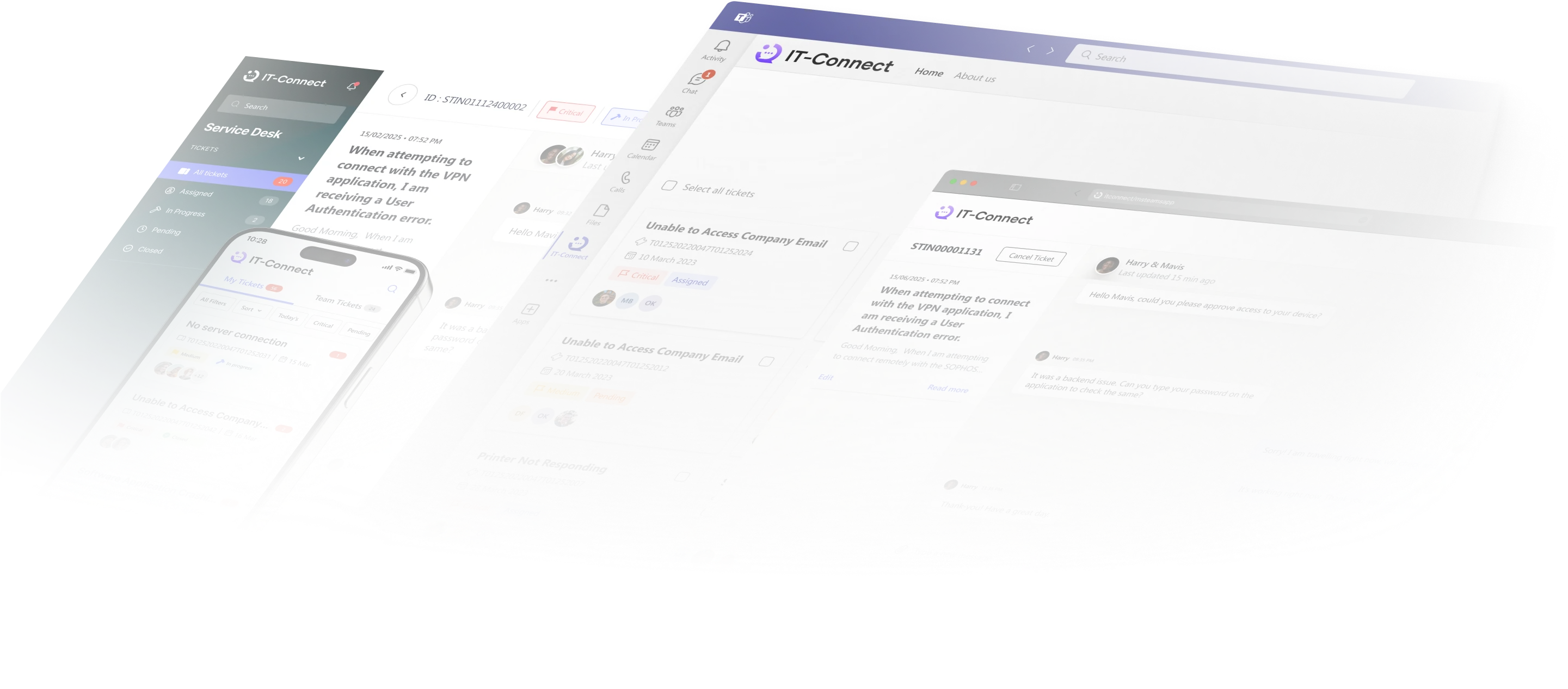 Work races on, and pausing isn't an option, especially for your end-users needing critical IT support. Let IT-Connect be their on-the-go support partner wherever their work schedule takes them.