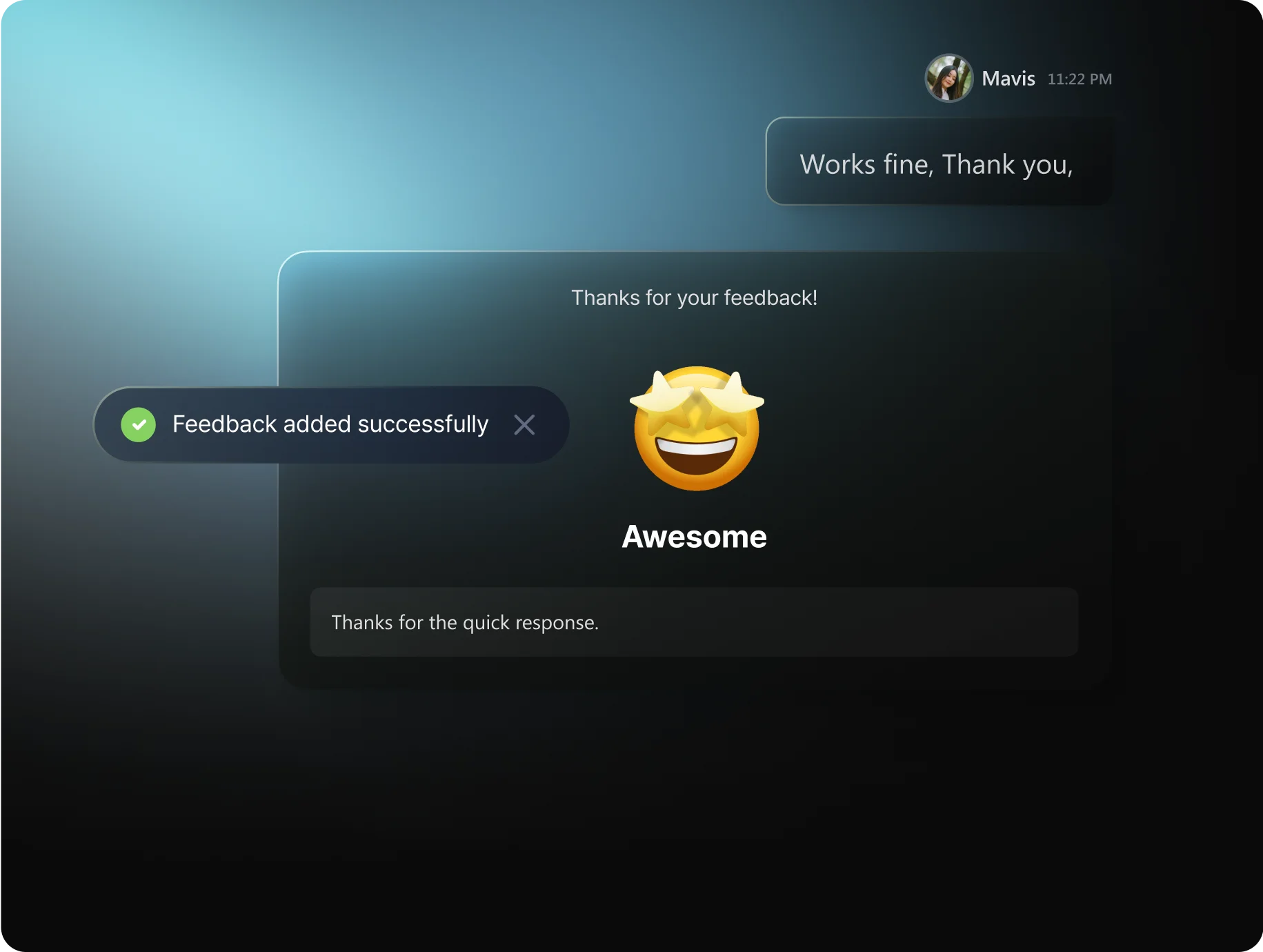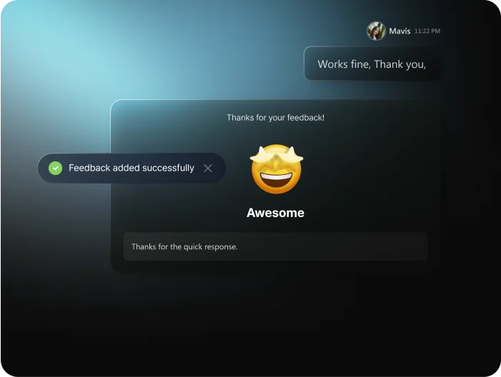 Let them help you support them better! Gather instant feedback directly within the platform to continuously refine the support experience. Everyone wins!