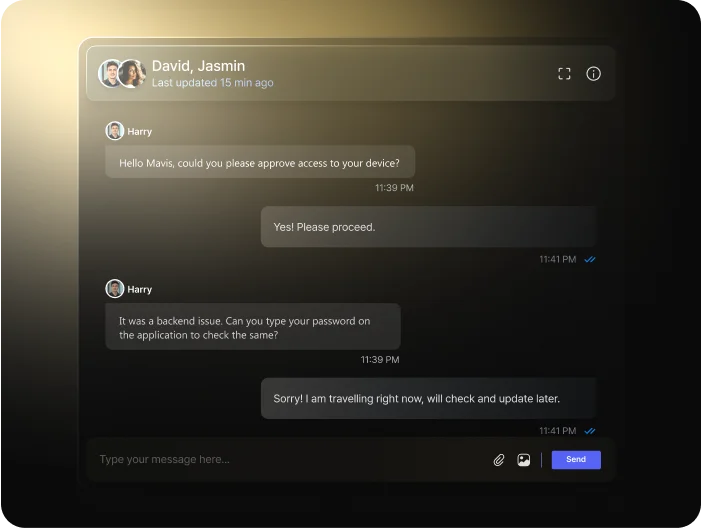 Support your end-users faster than they can type "Help!" with our intuitive chat. Ditch the phone and email tags for good.