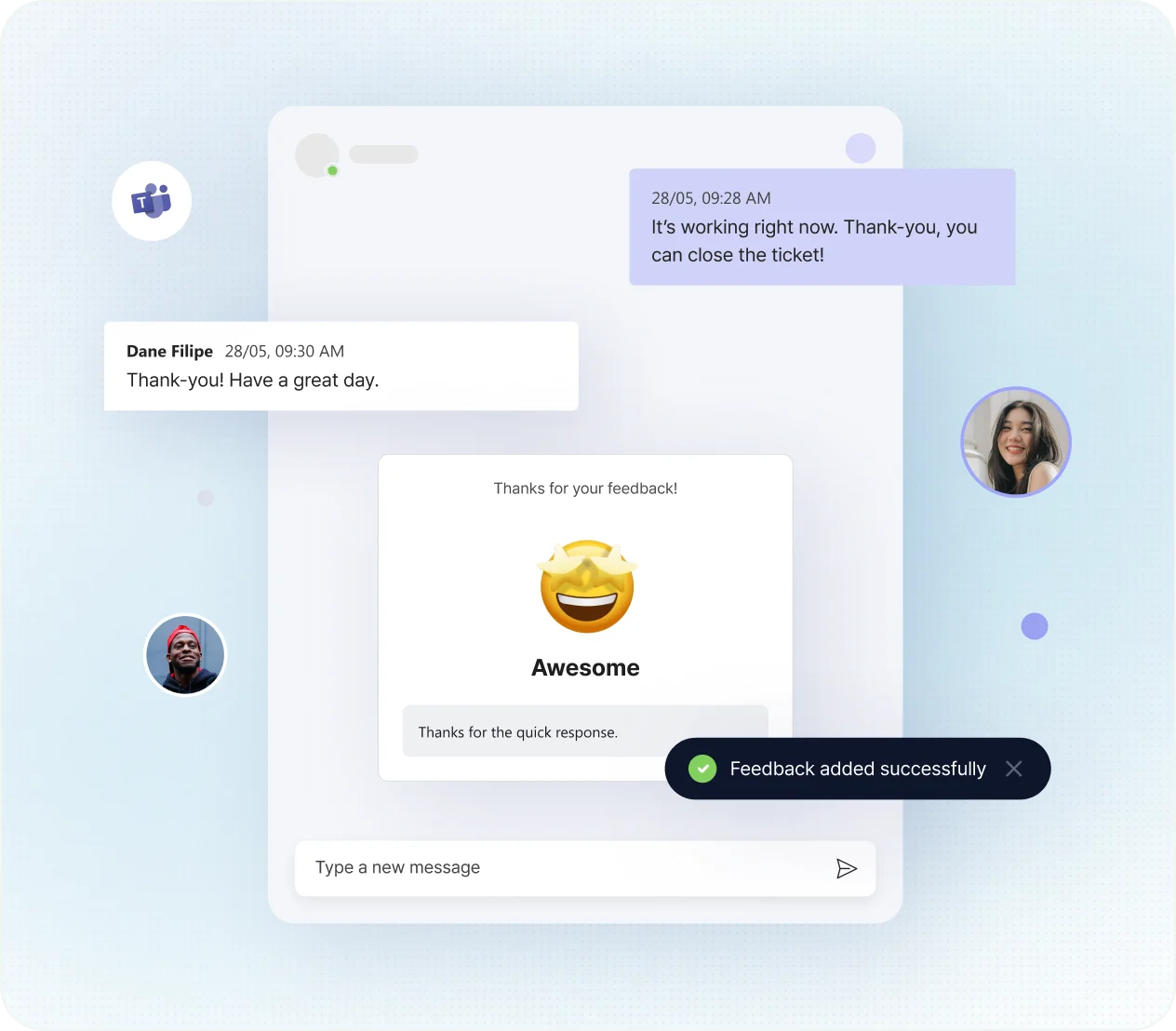 Urge your users to share their support experiences right in Teams. Their feedback drive refinements in your support delivery.
