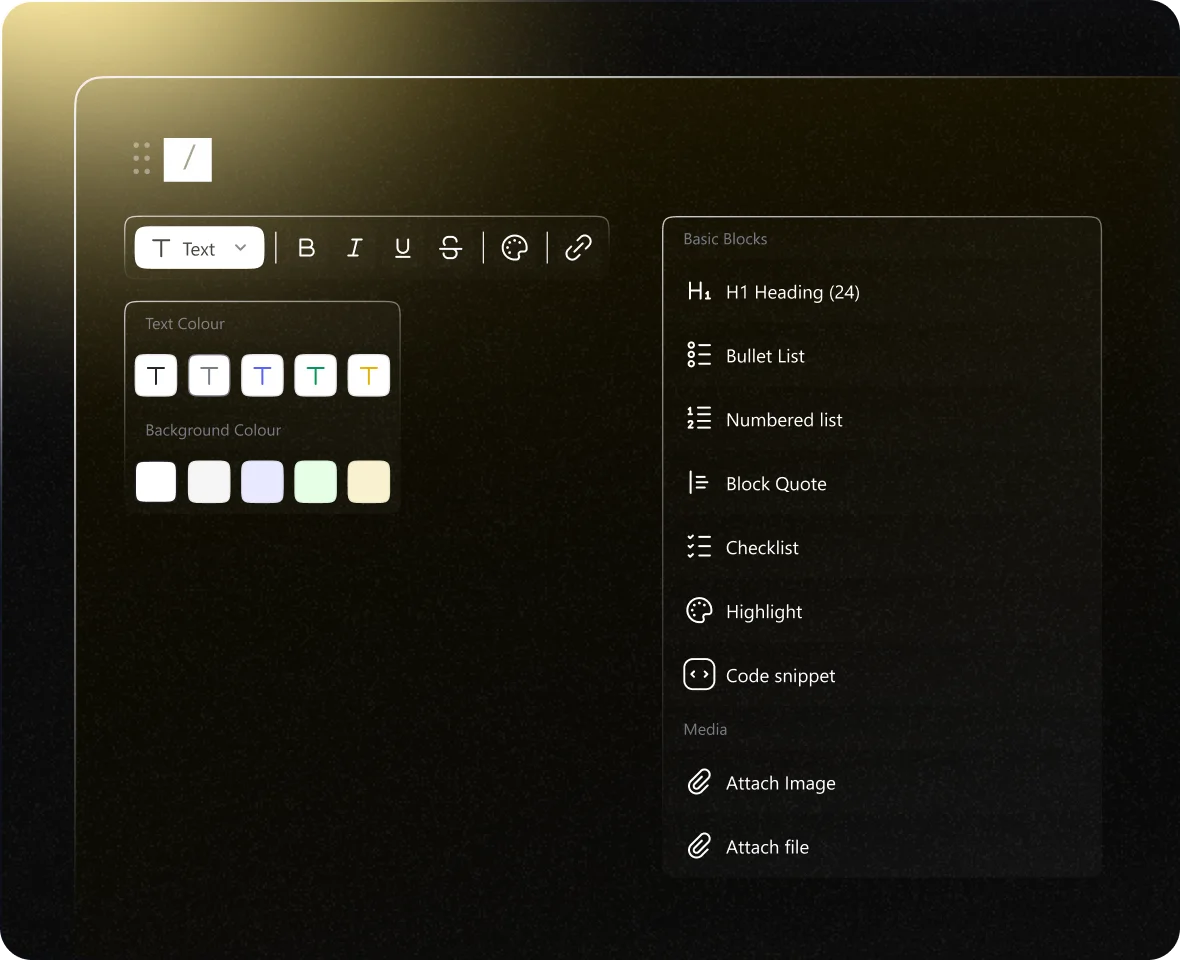 Go beyond plain text. Create documentation that actually helps, with images, embedded videos, and code snippets. Whether you're building training materials or solution guides, rich content makes knowledge easier to follow and faster to apply.