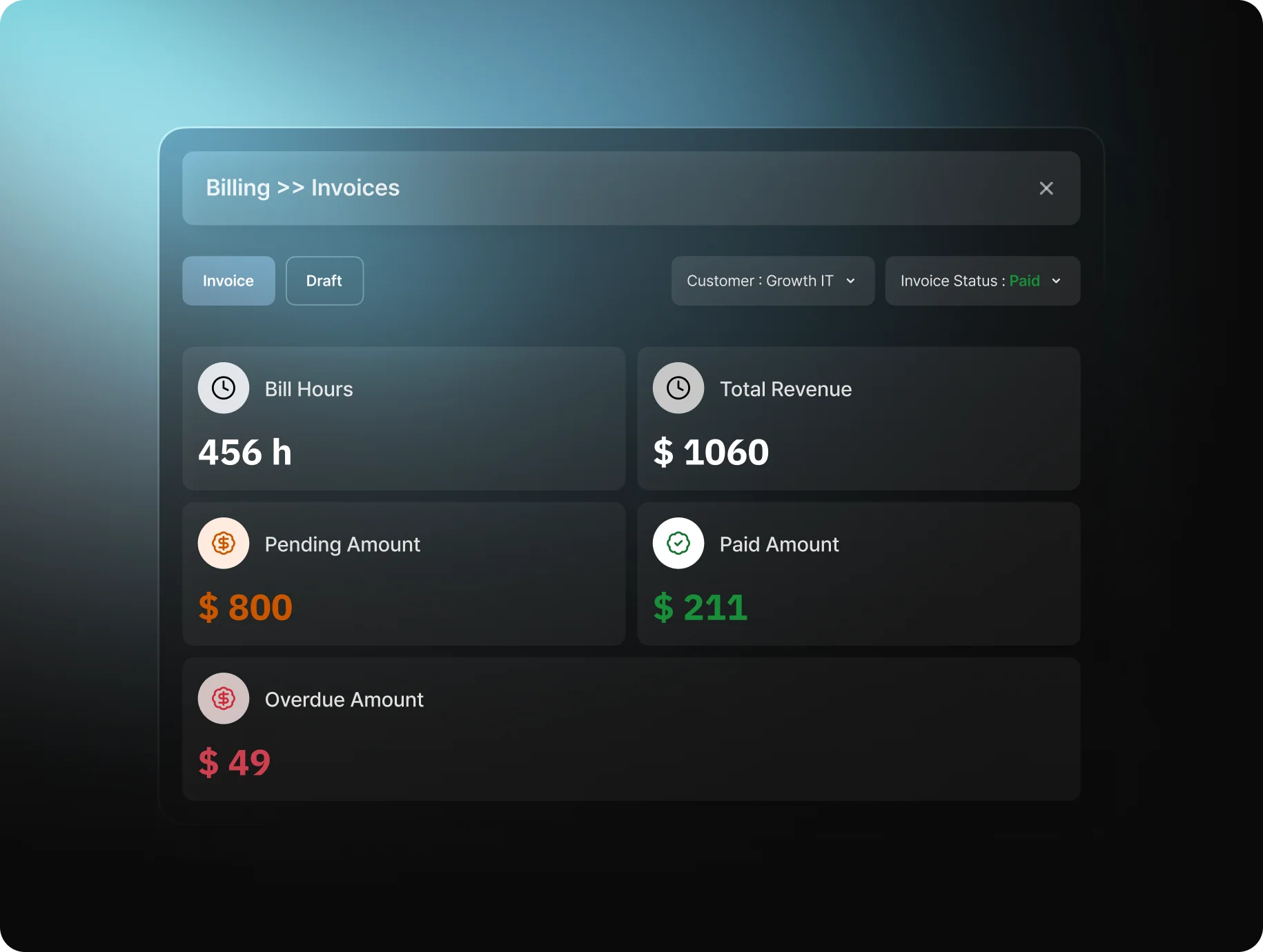 Track the status of each invoice with an intuitive system, reducing errors and preventing disputes.
