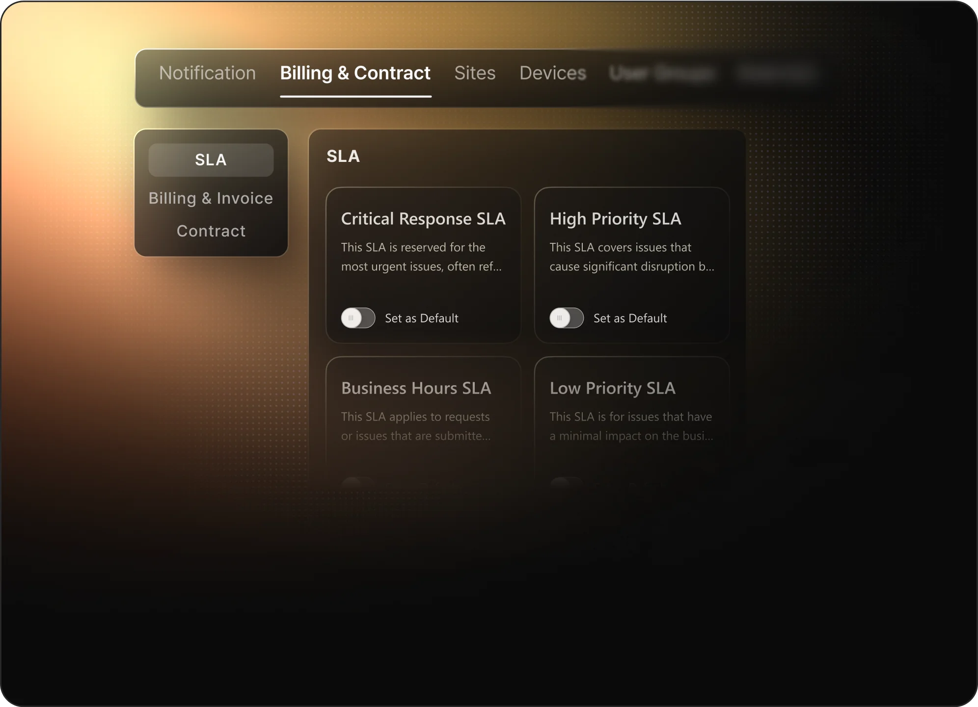 Handle multiple contracts for the same client with ease. Assign a default contract to streamline tickets, projects, and activities, improving billing clarity and cutting down administrative time.