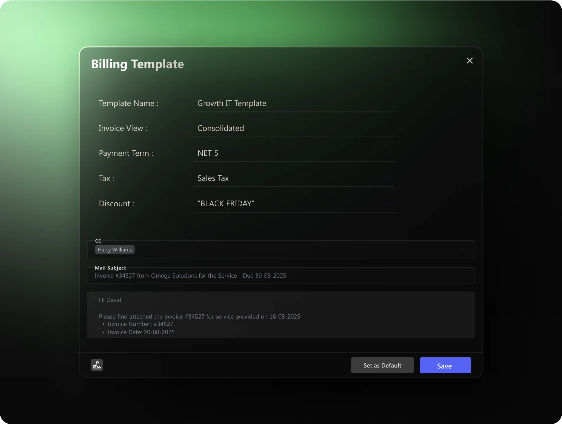 Save time by generating invoices in bulk and updating clients with a single action, scaling your operations without the stress.
