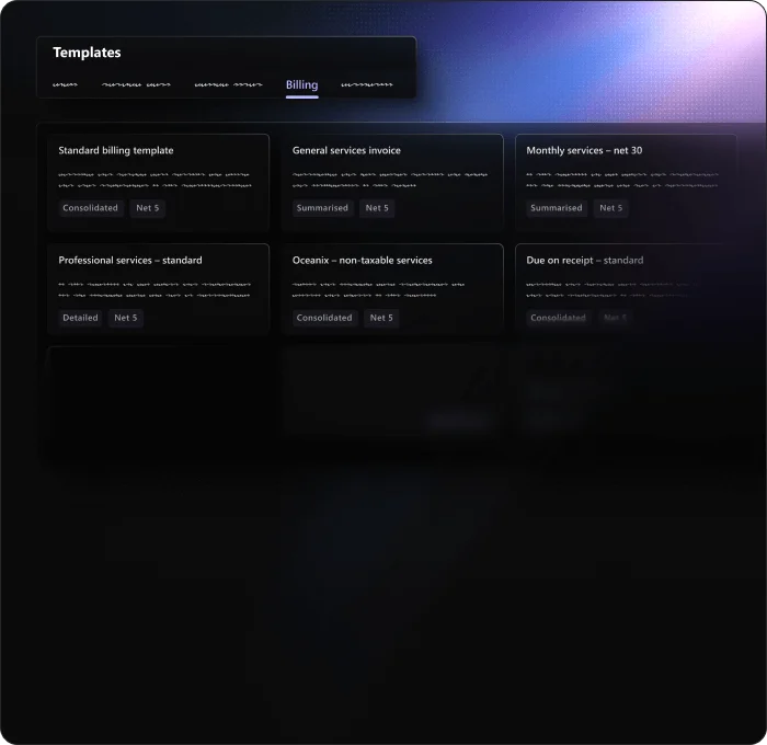 Charge a set price for a service or billing period, independent of time logged. Recurring invoices are generated on a defined schedule using templates, while you stay in control of how time, products, and expenses are treated throughout the contract. Well-suited for managed services and long-running engagements where predictability matters more than minute-by-minute billing.