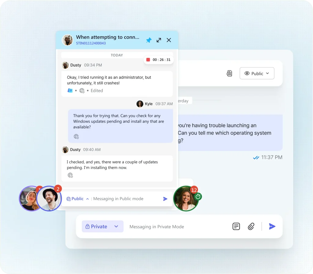 Instead of forcing techs to “resolve one, open next,” smarter setups allow pinning multiple tickets at the bottom of their workspace. They can jump between conversations instantly like tabs while keeping each chat docked, live, and in context.